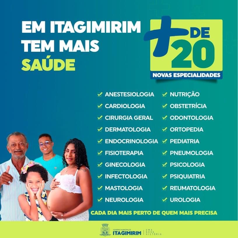 A população de Itagimirim recebeu a boa notícia sobre a implementação de novas especialidades médicas na rede pública de Saúde e comemora a novidade anunciada pela atual gestão municipal.