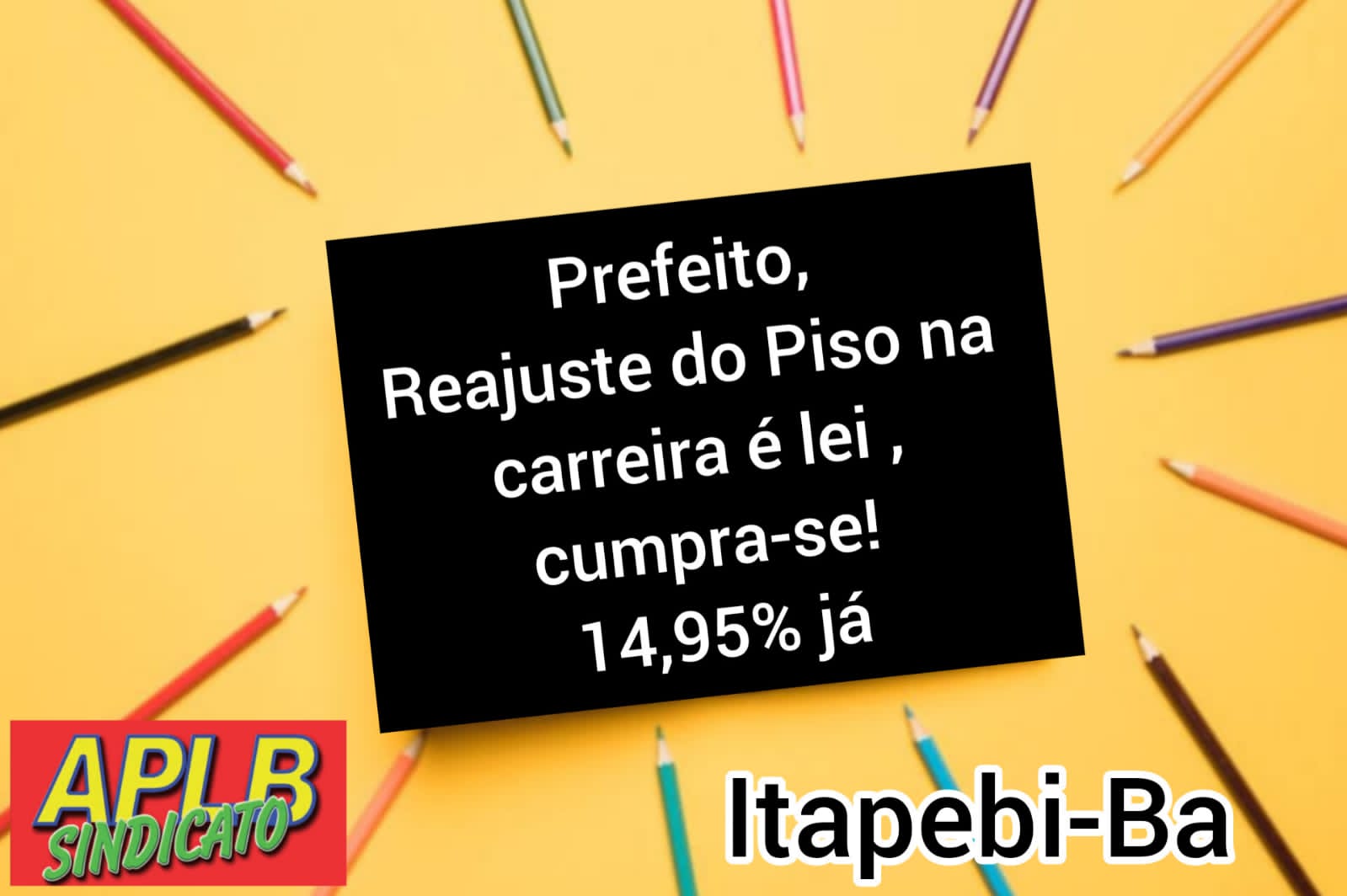 Após mais uma paralisação para uma tentativa de negociação com a atual gestão da Prefeitura de Itapebi, o Sindicato dos Professores e Trabalhadores da Educação em Itapebi (APLB Sindicato) se reúnem nesta terça-feira, 27, na Praça ao lado da Câmara de Vereadores e próximo ao Paço Municipal para mais uma mobilização em protesto ao descaso com a Educação e com os educadores da rede municipal de ensino.